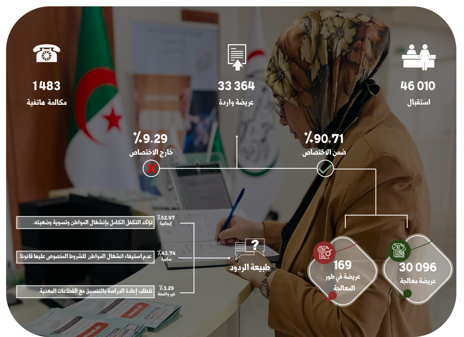 تقديم عرض حال مفصل في اجتماع المجلس التنفيذي حول مدى التكفل بانشغالات المواطنبن والرد عليها وكذا عملية متابعة سجلات الشكاوى